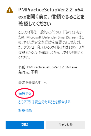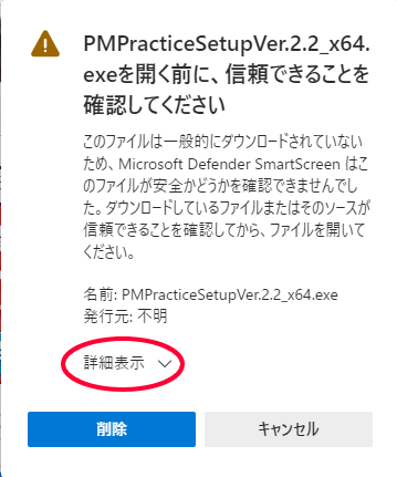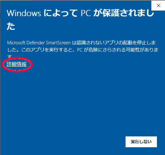起動しようとすると「Windows によって PC が保護されました」というダイアログが表示されるかもしれません。